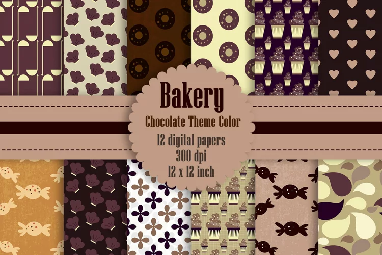12 Bakery Digital Papers in Chocolate Theme Color
