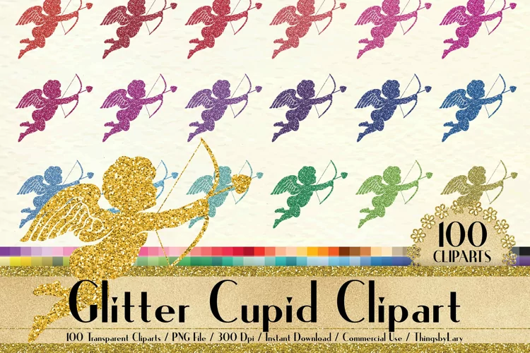 This pack will be available as 1 zip file which contains 100 PNG Images about Glitter Cupid Love Clip Arts, Wedding, Luxury Glitter in 100 different colors. Each image has size from 8 to 12 inch at the widest points and has 300 dpi resolution for the best quality printing.