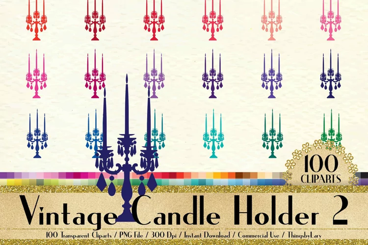 This pack will be available as 1 zip file which contains 100 PNG Images about Vintage Candle Holder Clip Arts, Antique, Chandelier in 100 different colors. Each image has size from 8 to 12 inch at the widest points and has 300 dpi resolution for the best quality printing.