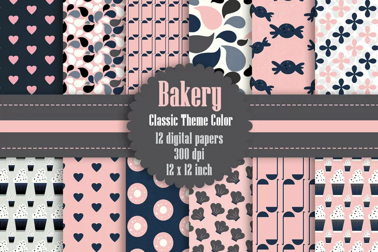 This pack will be available as 1 zip file which contains 12 JPG Images about Bakery Digital Papers in Indigo and Blush Pink Color. Each paper was created with in 12 x 12 inches (30.48 cm) and has 300 dpi resolution for the best quality printing.