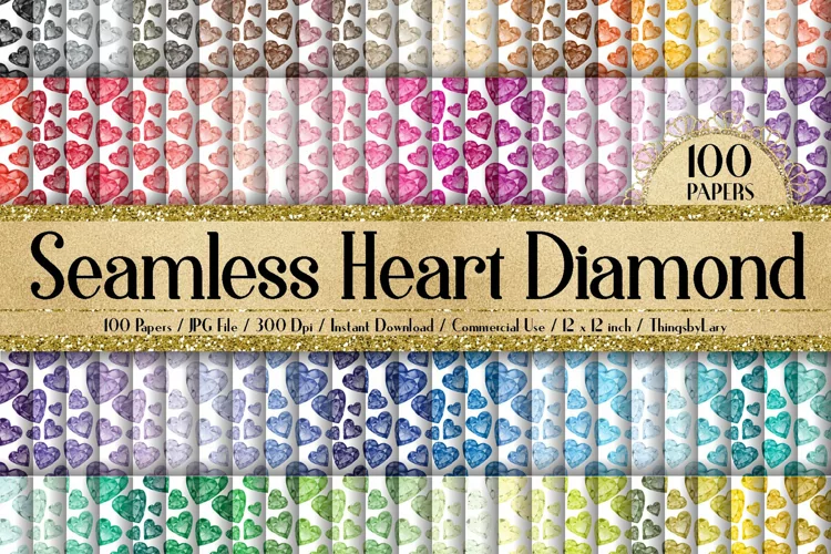 Similar Design Products to 100 Seamless Watercolor Heart Diamond Digital Papers