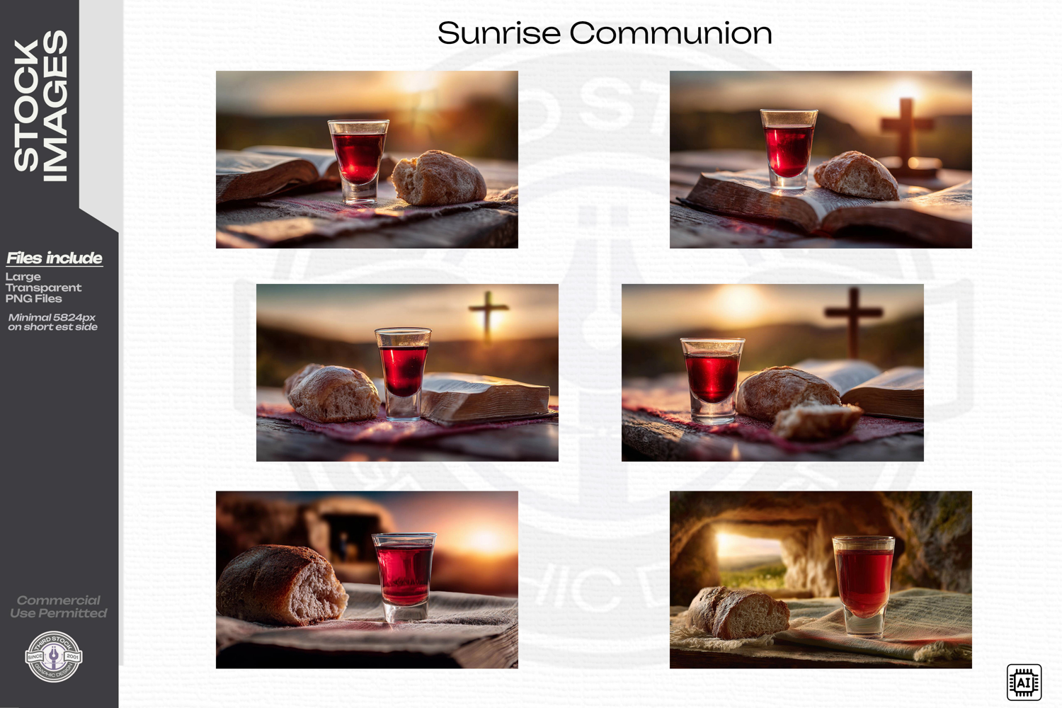 Depiction of a Christin communion with a sunrise resurrection background