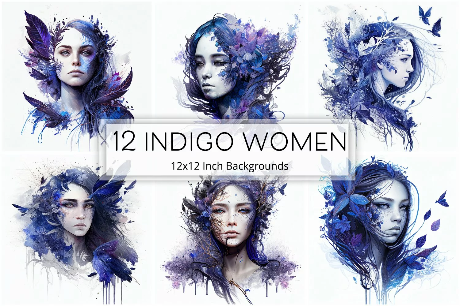 Similar Design Products to 12 Indigo Women Fantasy Art AI Illustrations 12x12 Inches