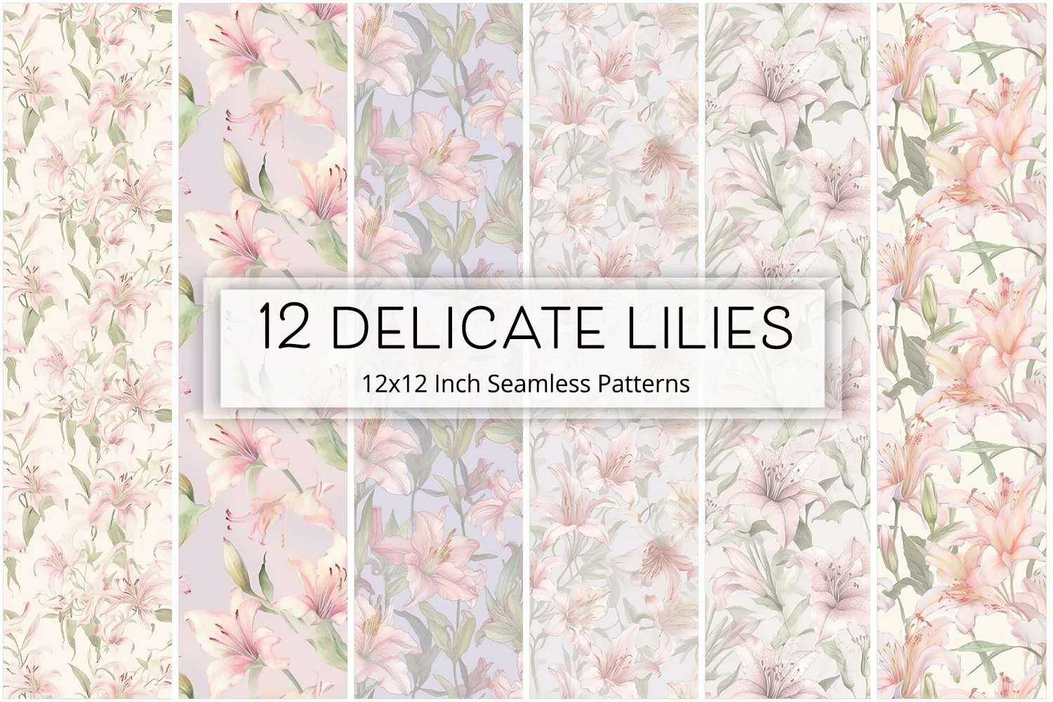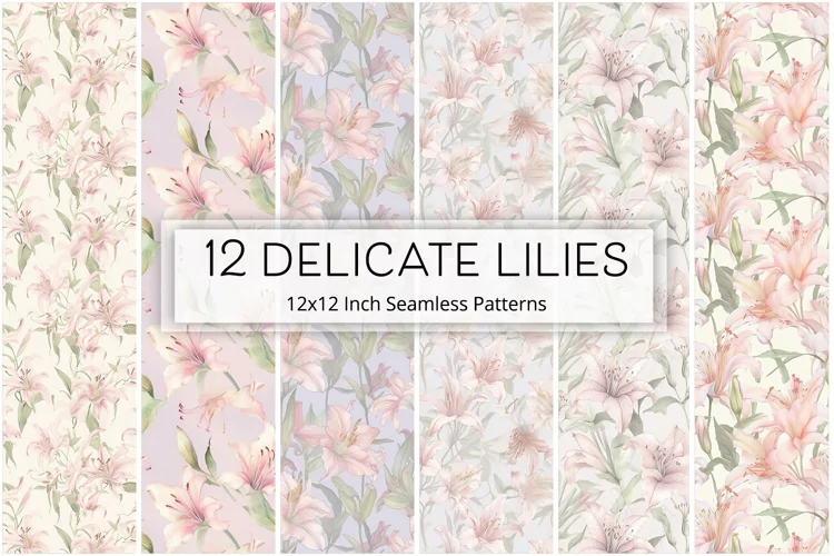 12 Delicate Lilies Seamless Patterns / Backgrounds 12x12 Inch