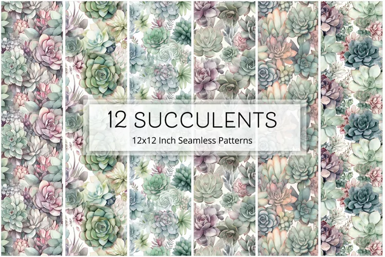12 Succulent Seamless Patterns / Backgrounds 12x12 Inch