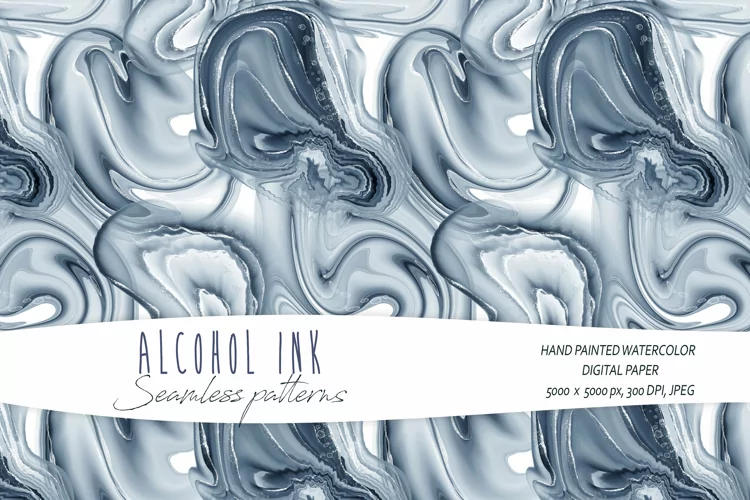 Abstract blue alcohol ink seamless pattern can be used for fabric, scrapbooking paper, wallpaper, textile design.
