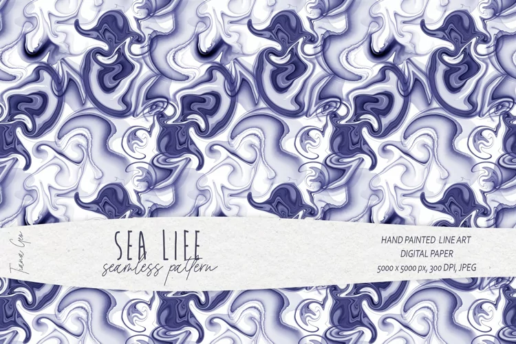 Abstract blue alcohol ink seamless pattern can be used for fabric, scrapbooking paper, wallpaper, textile design.