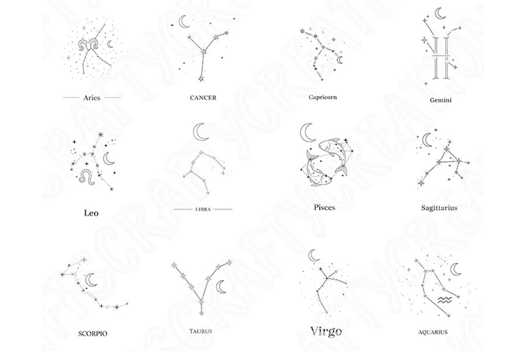 Minimalist Zodiac Constellation Png Bundle, Astrology Line