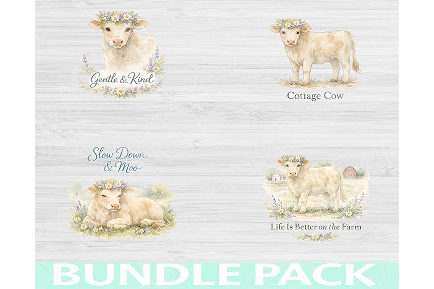 Bring calm, kindness, and cozy farm charm to your creations with this Cottage Cow PNG Bundle 🐄🌼