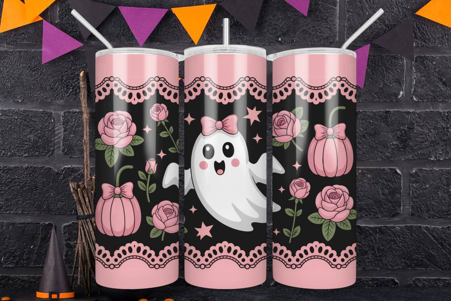Coquette Ghost Skinny Tumbler Wrap Black & Pink example image 1