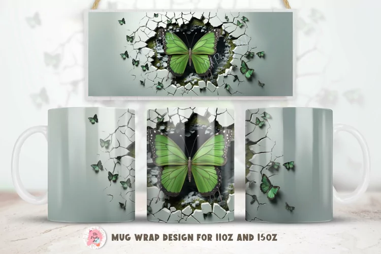 Butterfly 3D Mug Wrap For 11 oz and 15 oz