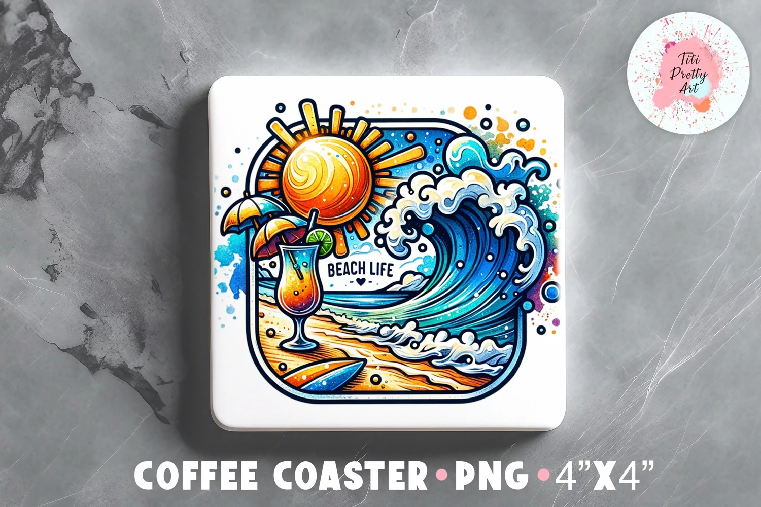 Similar Design Products to Square Coaster Sea Waves Sublimation Design Png | Summer Png