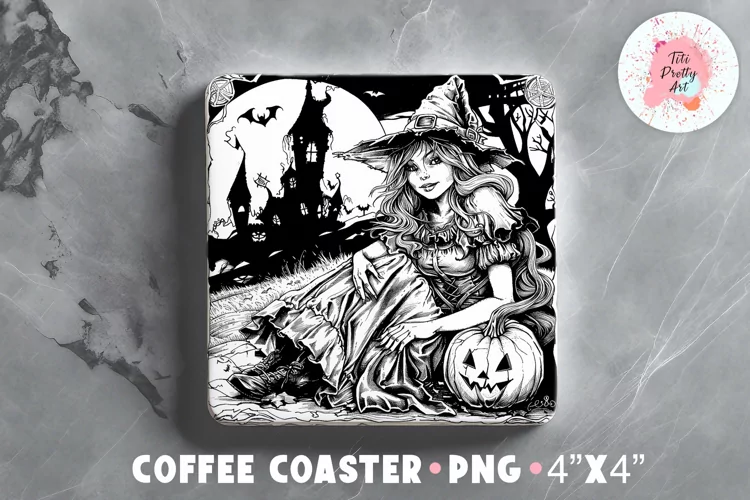 Halloween Square Coaster, Coffee Square Coaster Sublimation Png,  Square Coaster Png