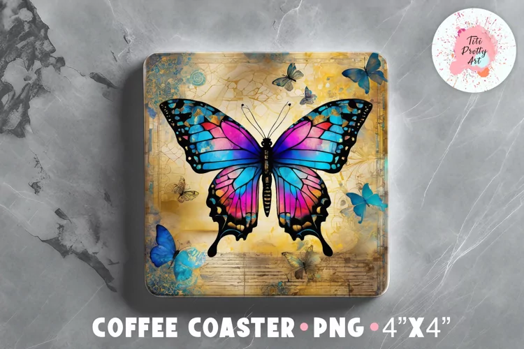 Square Coaster Butterfly Sublimation Design Png