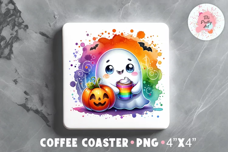 Halloween Square Coaster, Coffee Square Coaster Sublimation Png,  Square Coaster Png