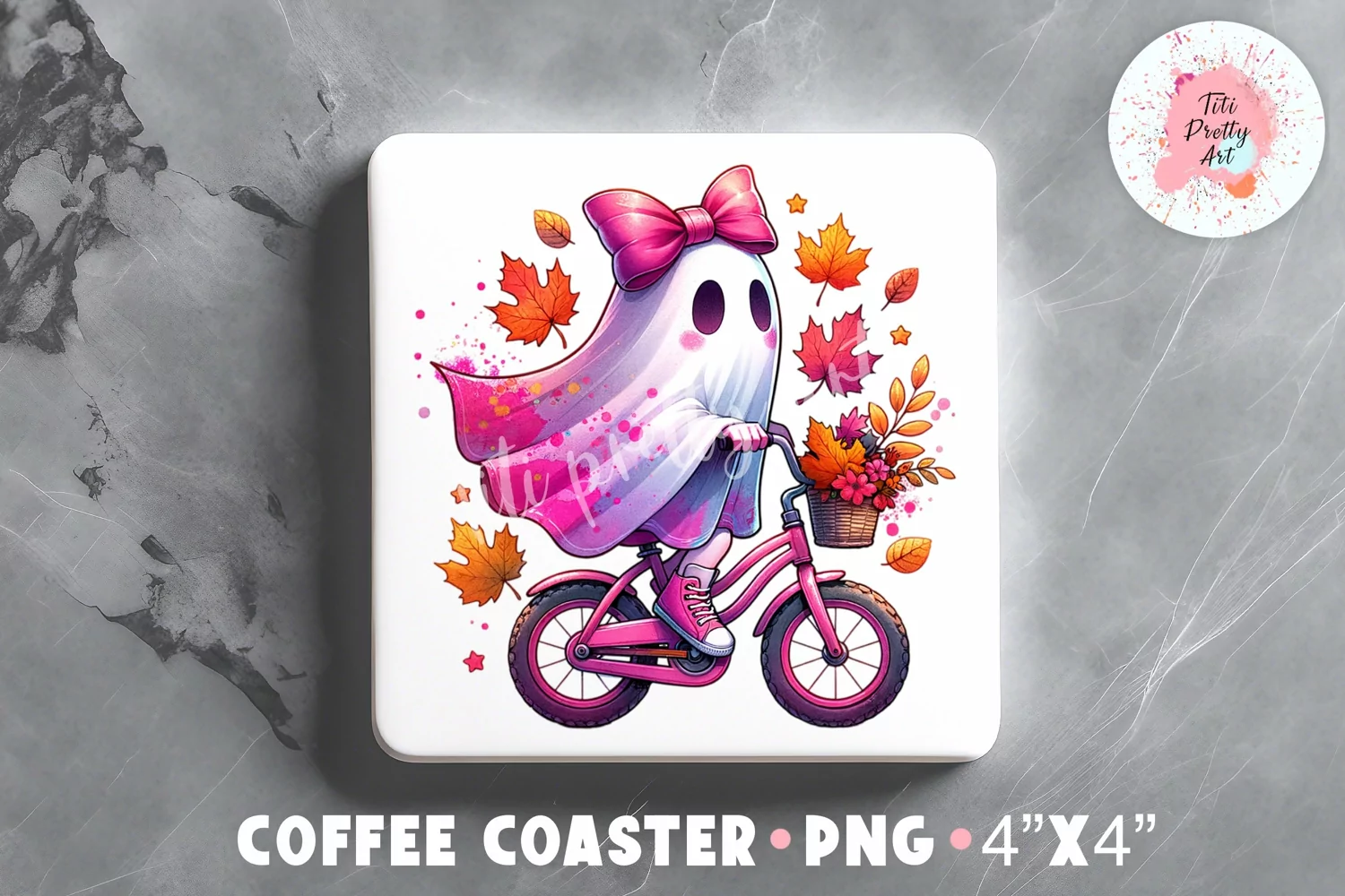 Fall Ghost Square Coaster Sublimation Design Png, Autumn Png