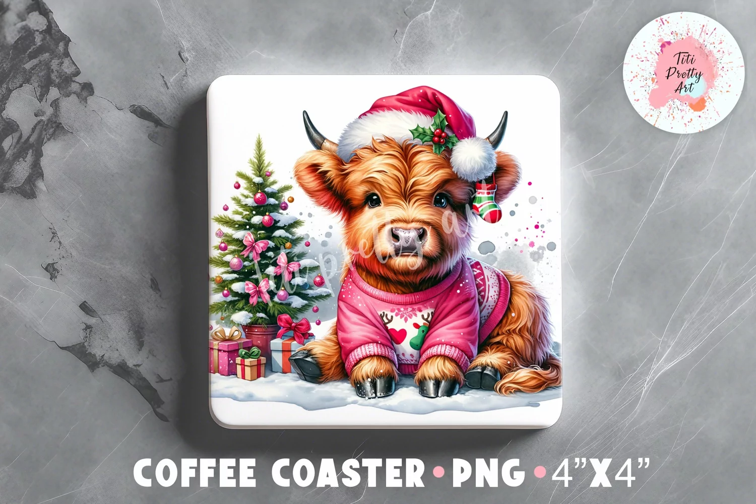 Similar Design Products to Christmas Cow Square Coaster Sublimation Design Png, Cow Png