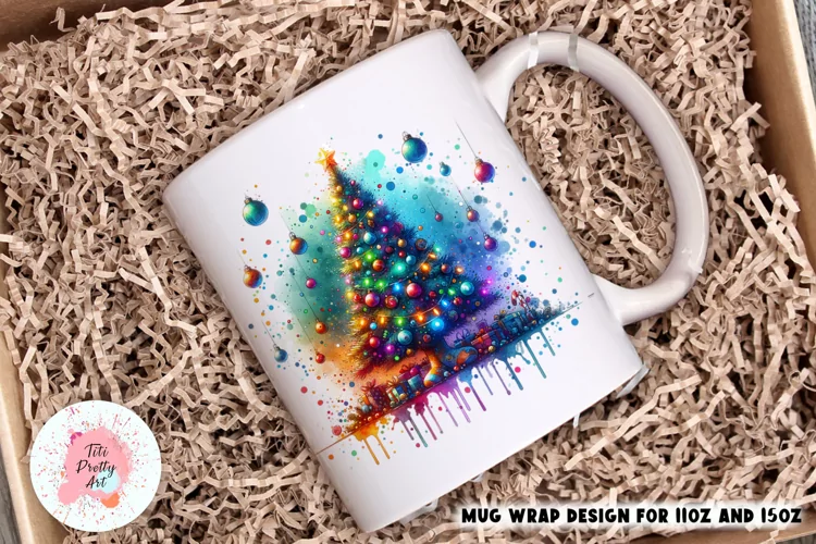Christmas Mug Wrap For 11 oz and 15 oz, 3d Mug, Christmas Tree Png