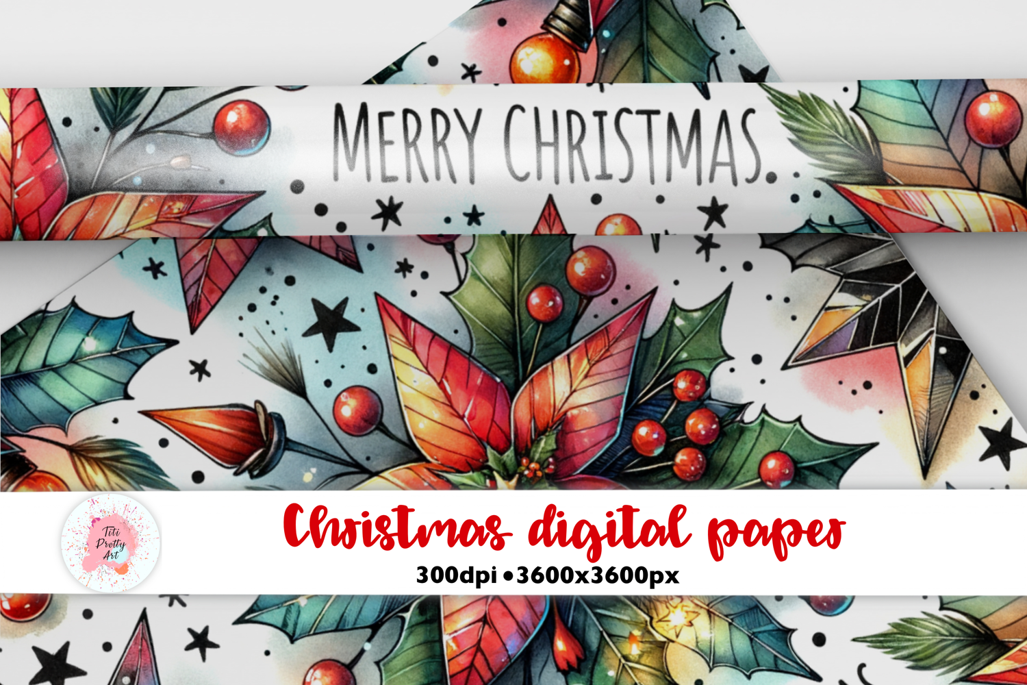 Christmas digital paper bundle png, Christmas Illustrations, Seamless Digital Papers PNG