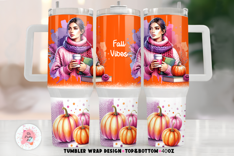 Fall Vibes Autumn 40 oz Tumbler Wrap Sublimation Png