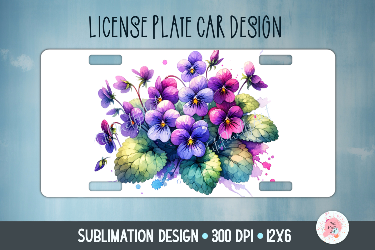 Spring Flowers Violets Car Plate Sublimation Design Png