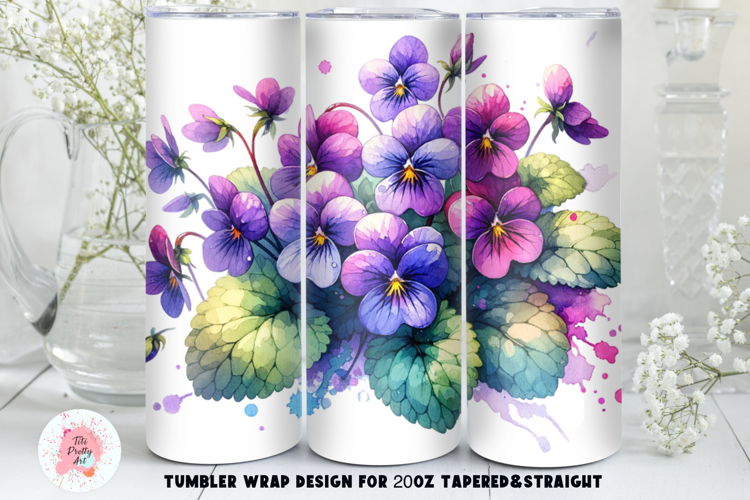 Spring Flowers Violets Tumbler Wrap, 20 oz tumbler wrap, Christmas Snowman Tumbler Wrap