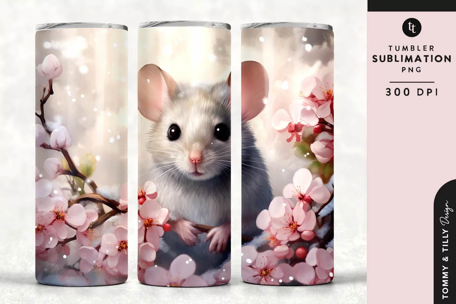Christmas Snowy Animal Mouse Tumbler Wrap PNG Sublimation