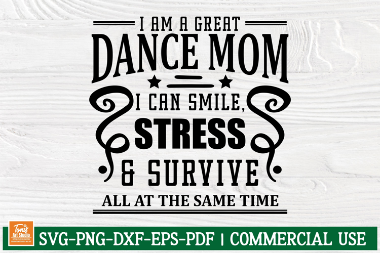 A Beautiful Dance Mom SVG Design, with the quote: I Am a Great Dance Mom I Can Smile, Stress & Survive All at the Same Time. Digital Download in SVG, PNG, DXF, EPS & PDF format. Dance mom svg | dance svg | funny dance mom svg | dance mom shirt svg | dancer mom svg | dancing mom svg | dance cut file | dancer saying svg | dance team mom svg | cricut dance svg | silhouette dance svg | cut file.