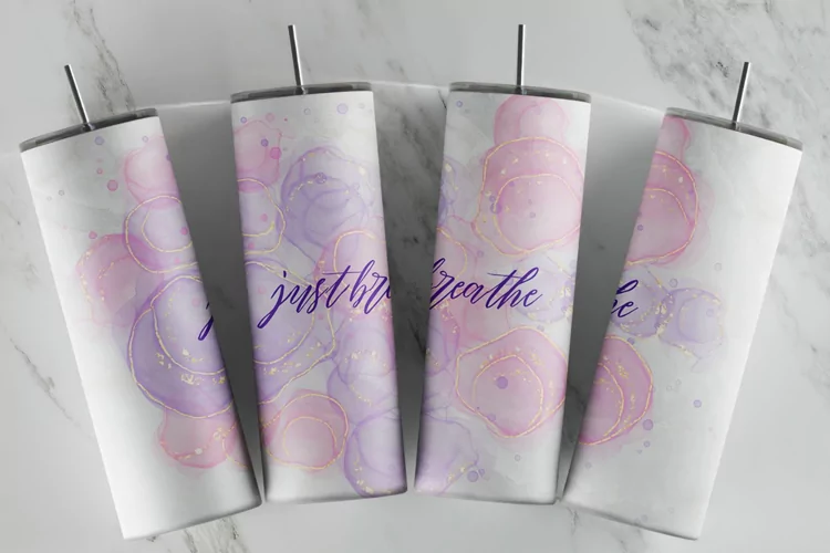 Gold Foil Motivational Quote Just Breathe Glitter Tumbler Sublimation Tumbler Pink Purple Skinny Tumbler Tumbler Wrap 20 Oz Skinny Tumbler Watercolor Tumbler