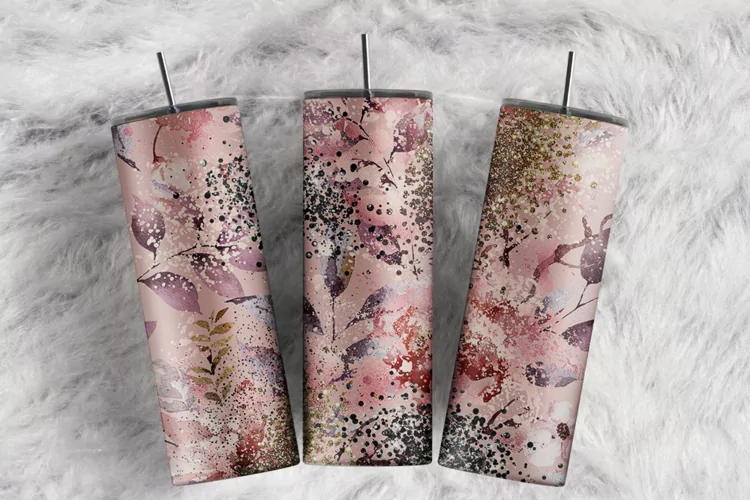 Pink Foil Glitter Tumbler Floral Leaves Sublimation Tumbler Black Gold Glitter Skinny Tumbler Tumbler Wrap 20 Oz Skinny Tumbler Purple Tumbler Watercolor Tumbler