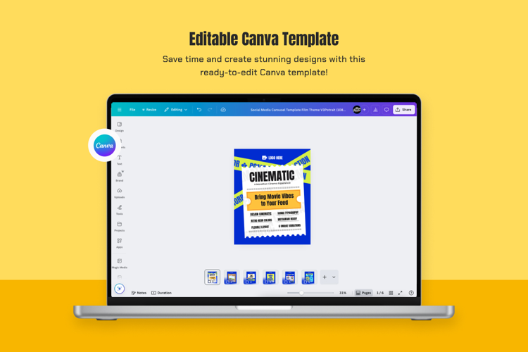 Bring your film narrative to life through this Film Storytelling Carousel a modern, editorial layout built to help creators share film insights and creative visuals in a structured storytelling format.