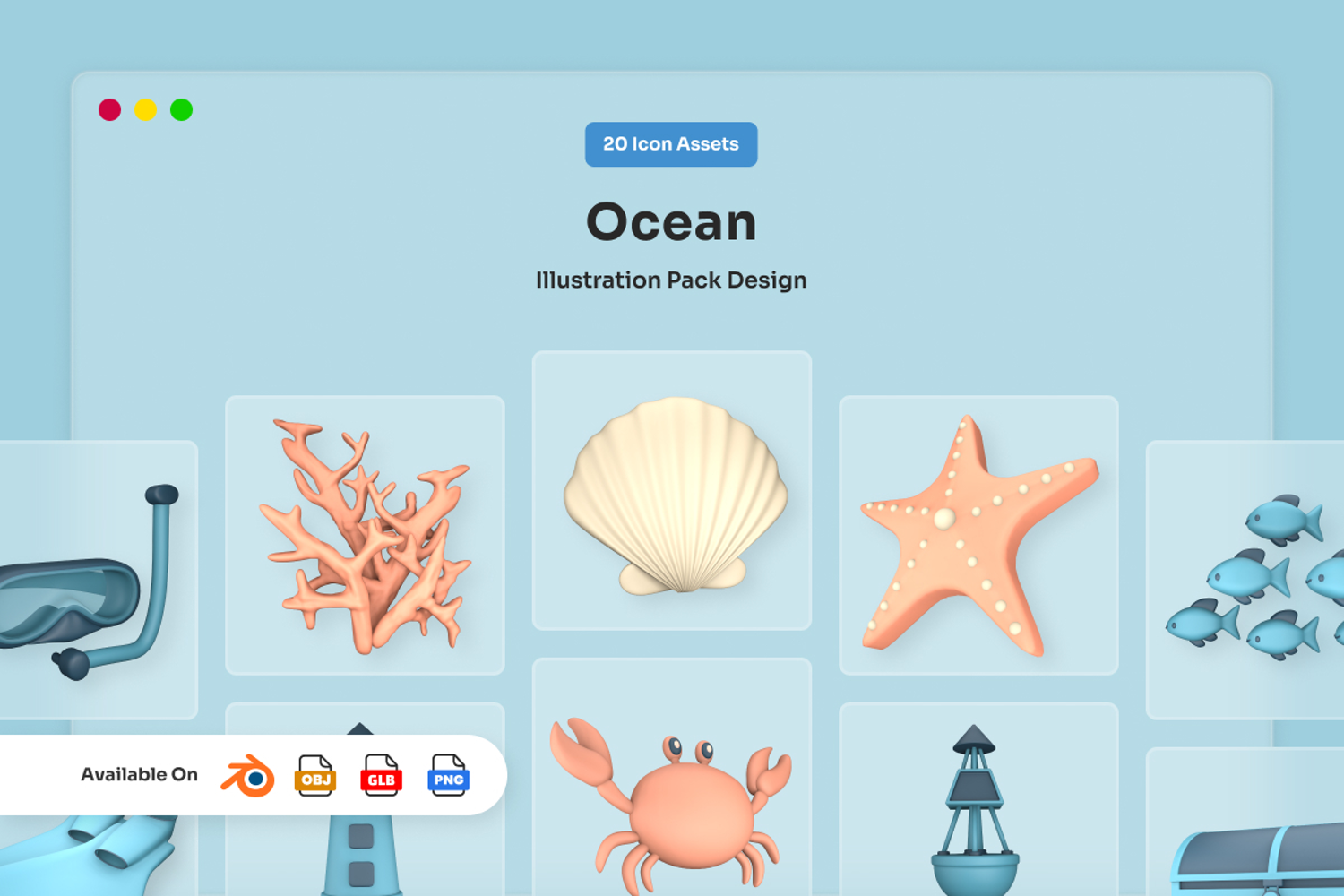 Explore the charm of the deep sea with this underwater-themed 3D icon collection. Designed with a semi-realistic style and smooth, toy-like forms, each asset brings coral reefs, fish, and nautical objects to life with a clean, modern aesthetic.