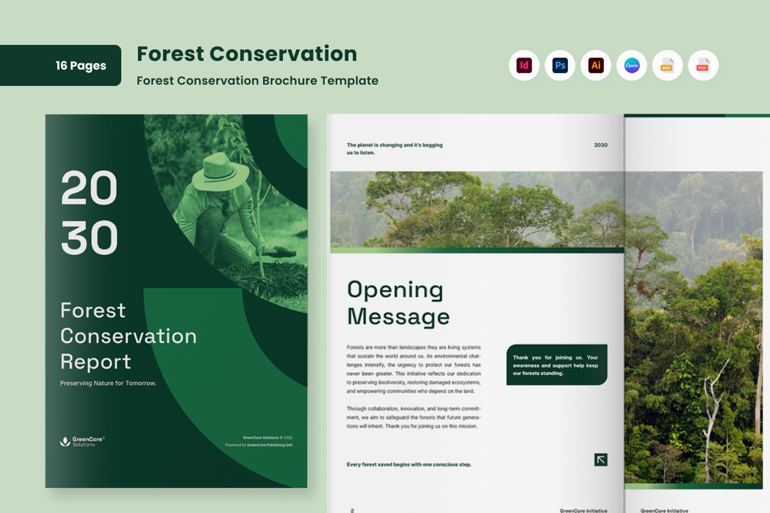 Its natural muted palette and strategic white space create a premium feel suitable for ecological proposals, and educational content. Ideal for designers, NGOs, conservation groups, and forest management institutions needing a refined, ready-to-customize presentation tool.