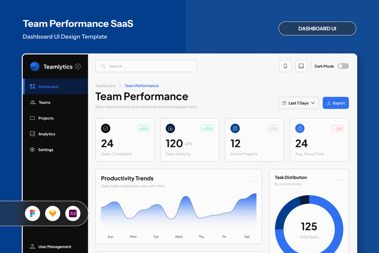 Modern Teamwork Analytics Management Report Responsive Interface Dashboard Productivity Saas