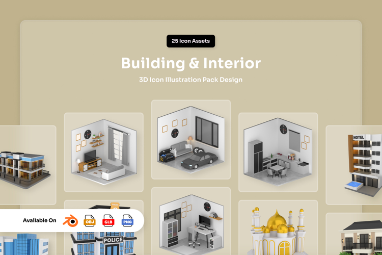 This 3D icon pack is crafted for modern architecture, interior design, and property-related visuals that require clarity, consistency, and a professional look. Featuring a balanced isometric and front perspective style, the icons communicate buildings, rooms, furniture, and interior elements with clean forms that remain readable across UI, dashboards, and presentation layouts.