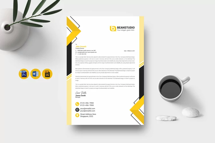 letterhead template, Business Letterhead, Corporate Letterhead, Company Letterhead, Photoshop & MS Word Template-Instant Download