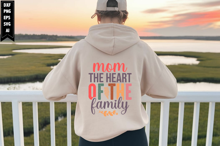 Mom the Heart of the Family Svg, Mom Life Svg Designs