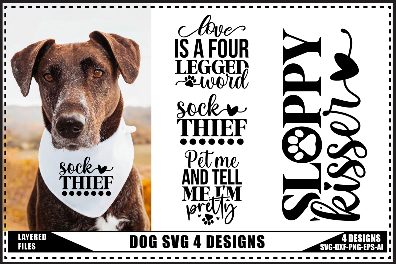 Dogs Svg 4 Designs, Dog Bandana Svg Designs