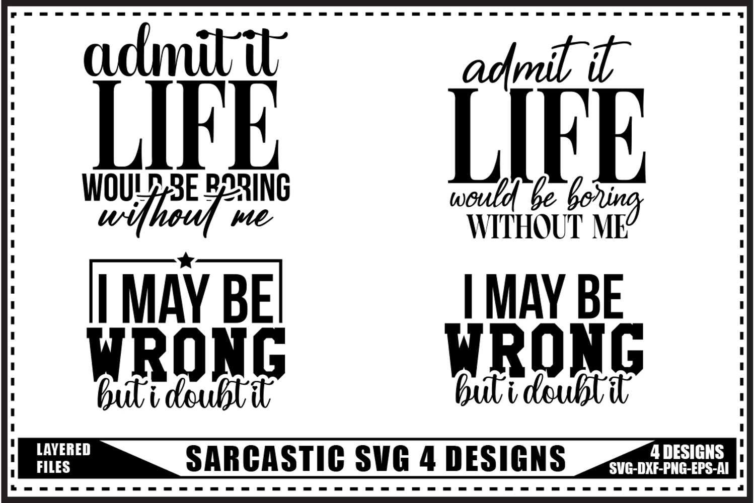 Sarcastic Svg 4 Designs, Funny Sarcastic Quotes Svg