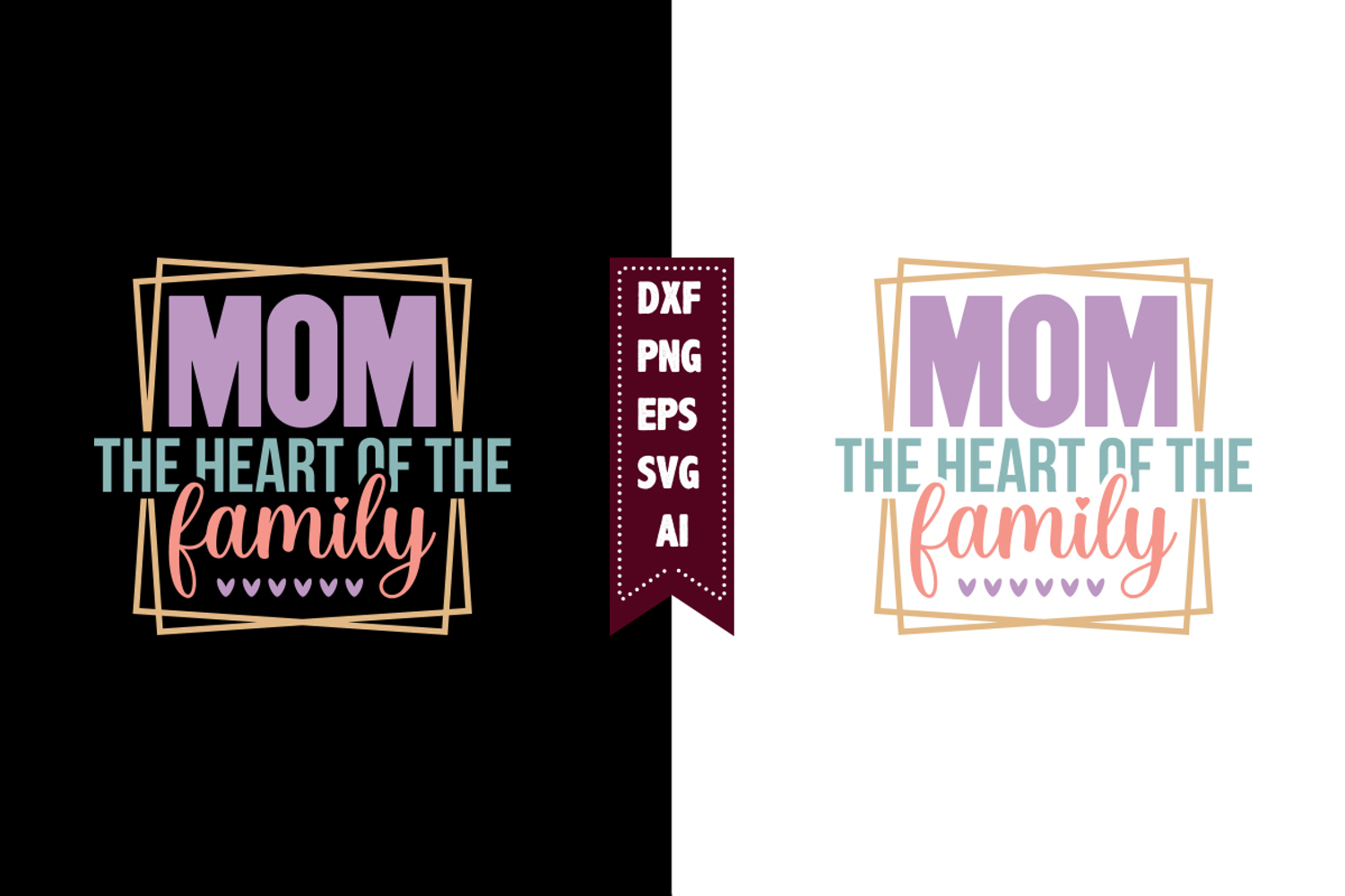 Mom the Heart of the Family Svg, Mother's Day Svg Designs
