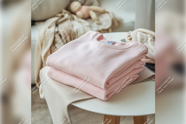 Clothing Apparel Stack Garment Pastel Colors Knitwear Tshirt Mockup Soft Tones Pink Tshirt Folded Clothes