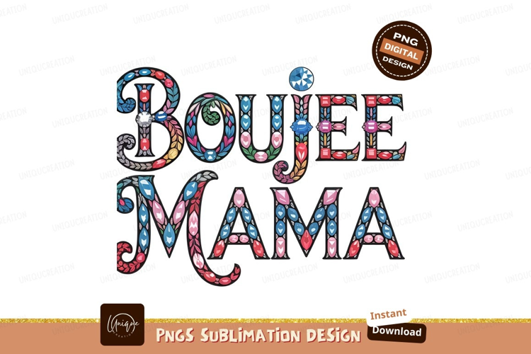 Boujee Mama Typography With Floral Gems Sublimation PNG example image 1