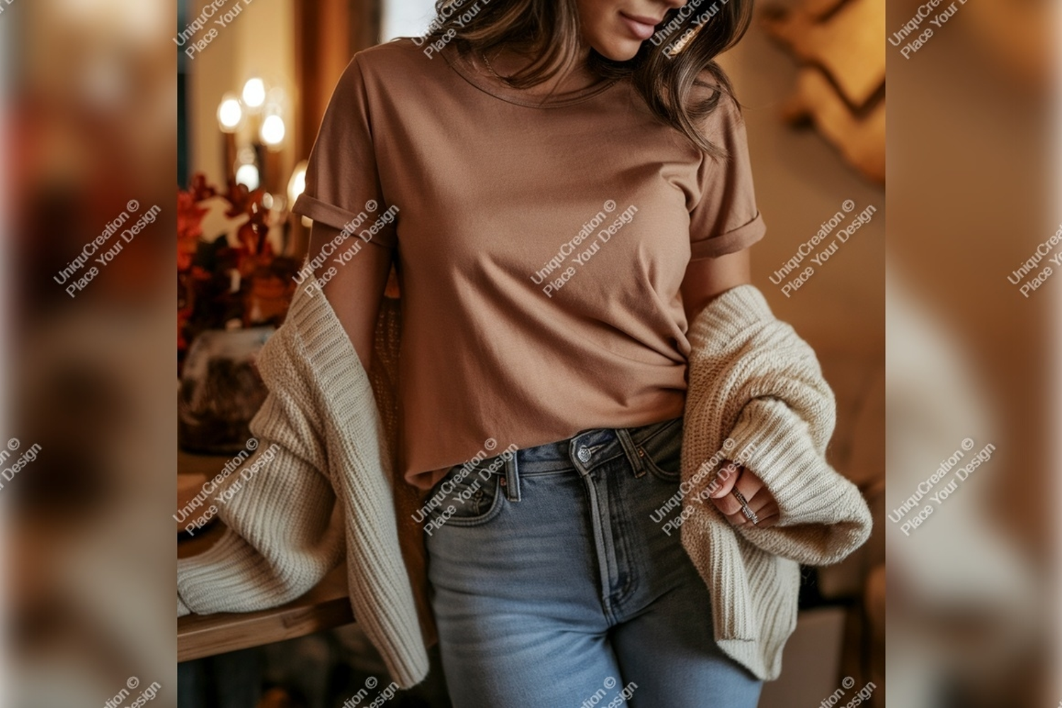 Similar Design Products to Woman Wearing A Brown Tshirt Mockup