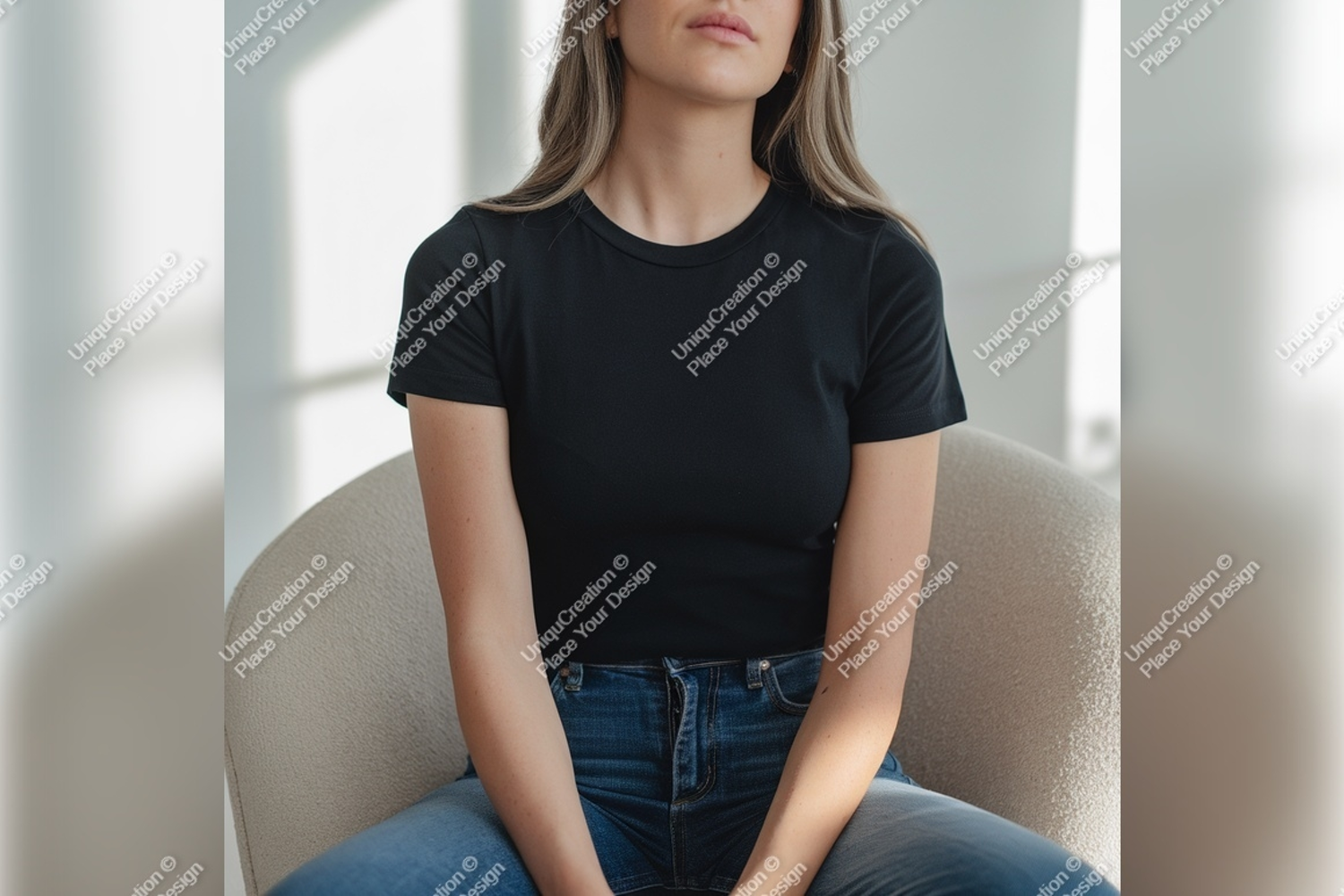 Fashion Tshirt Style Casual Mockup Woman Model Studio Jeans Black Tshirt
