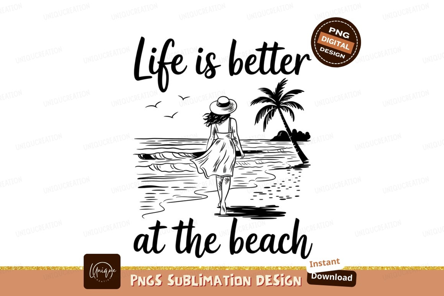 Keywords : beach, woman, girl, vector, illustration, palm tree, sea, ocean, summer, vacation, relax, travel, holiday, tropical, shore, coastline, water, nature, sand, birds, silhouette, sun, lifestyle, happiness, freedom, design, art, black and white, drawing, outline, sublimation png, graphic, sketch, handwritten, quote