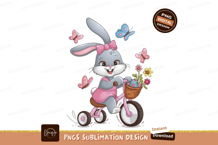Keywords : bunny, rabbit, easter, tricycle, bike, flowers, butterfly, spring, cartoon, cute, vector, illustration, animal, character, happy, pink, easter egg, basket, bow, whimsical, graphic, design, clip art, kawaii, springtime, children, girl, holiday, celebration, sublimation png, pastel colors, adorable, cheerful, playful