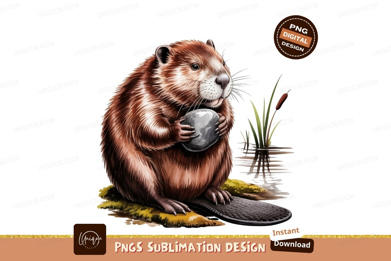 Keywords : beaver,animal,mammal,rodent,wildlife,nature,water,stone,fur,tail,cute,isolated,transparent,png,alpha,watercolor,illustration,drawing,art,artwork,digital,design,clipart,graphic,element,icon,symbol,sign,logo,mascot,character,cartoon,funny,happy,wild,outdoors,river,lake,pond,cattail,grass,moss,rock,sitting,holding,looking,profile