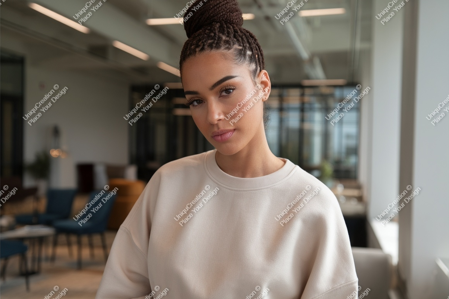 Tags: woman,sweatshirt,beige,fashion,style,clothing,apparel,casual,portrait,indoor,female,model,design,mockup,longsleeve,top,textile,fabric,wear,adult,person,young,lifestyle,attractive,beauty,indoor,studio,presentation,template,blank,cotton,jersey,pullover,crewneck,comfortable,cozy,trend,stylish,minimal,neutral,mock,up,product,display,promotion,advertising,marketing