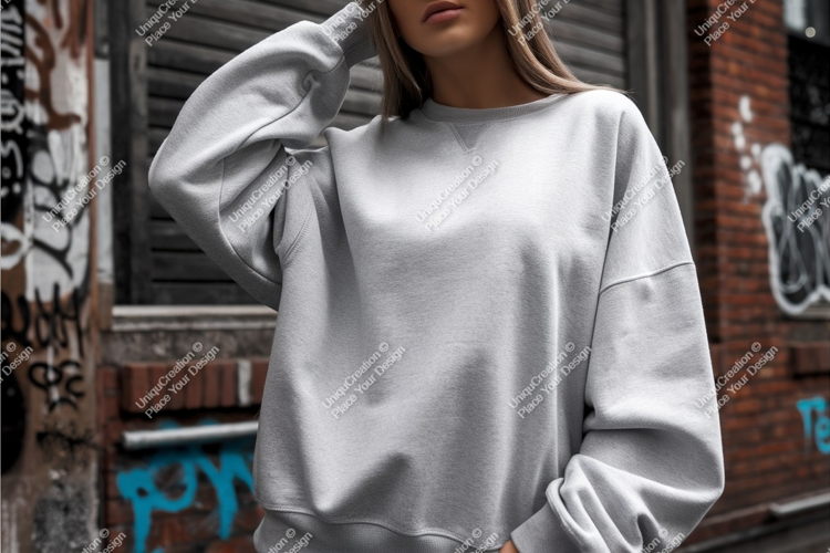 Woman in gray sweatshirt mockup
