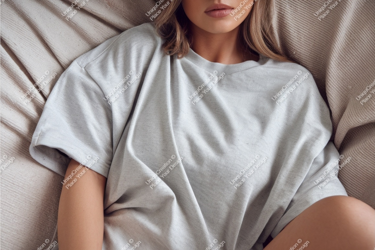 Similar Design Products to Woman in gray tshirt indoors mockup